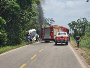 Um grave acidente foi registrado na tarde desta quinta-feira -feira (18) nas proximidades da Embrapa, na PA-475, em Moju. Duas carretas colidiram após um caminhão tentar realizar uma ultrapassagem.