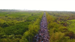 Durante a tradicional caminhada de 7,5 km do Círio de Nossa Senhora de Nazaré, em Marabá, os fiéis se reuniram no Bambuzal, ponto simbólico da procissão, para um momento de profunda reflexão.