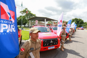 (Solenidade em Belém marcou repasse de 38 viaturas e 130 armamentos ao CBMPA; governador destacou parceria com o Fundo Amazônia e foco no combate às queimadas)