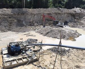 (Operação destrói maquinários, desmonta acampamentos e apreende equipamentos usados na exploração criminosa do rio Branco.)