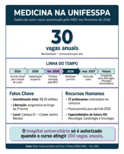 O primeiro vestibular para Medicina na Unifesspa deve ocorrer antes do final de 2026, com as aulas da primeira turma iniciando em março de 2027.